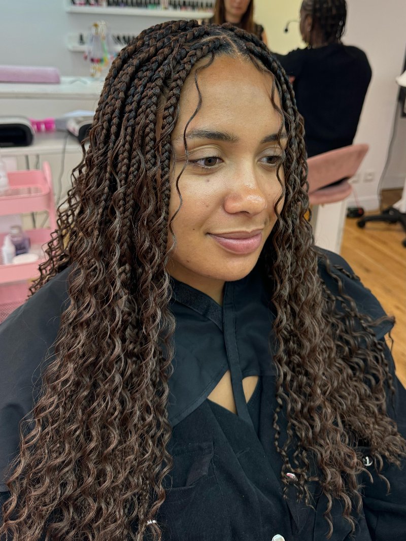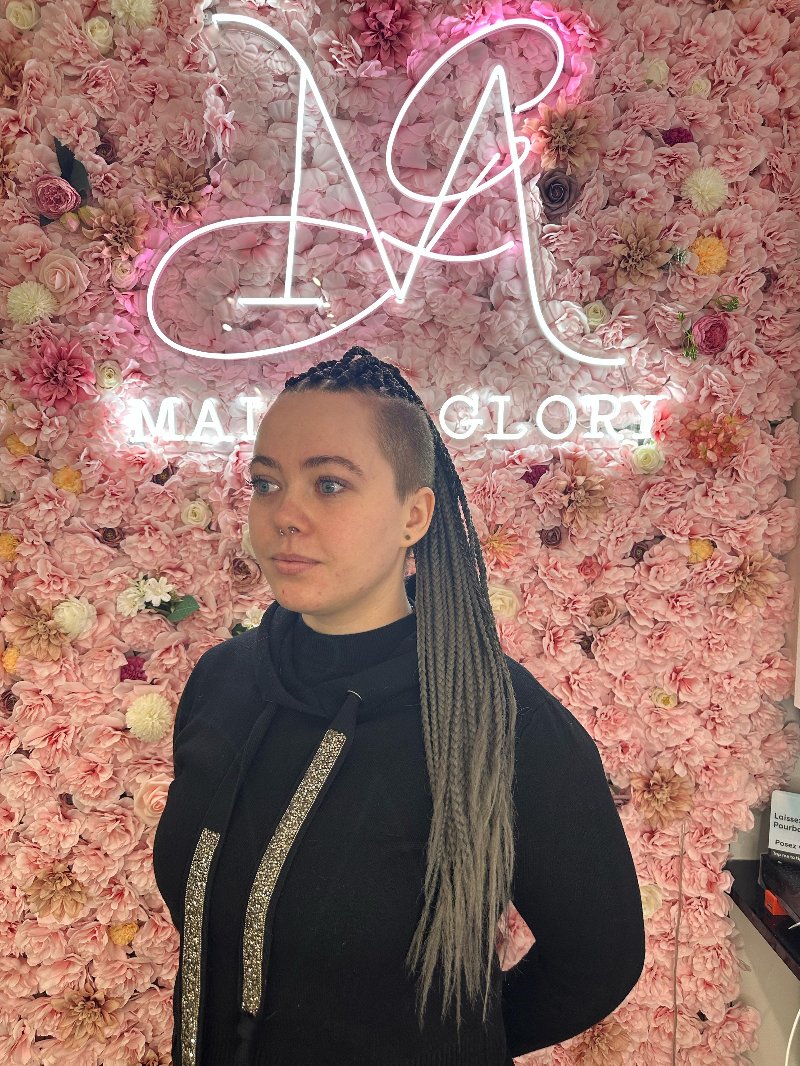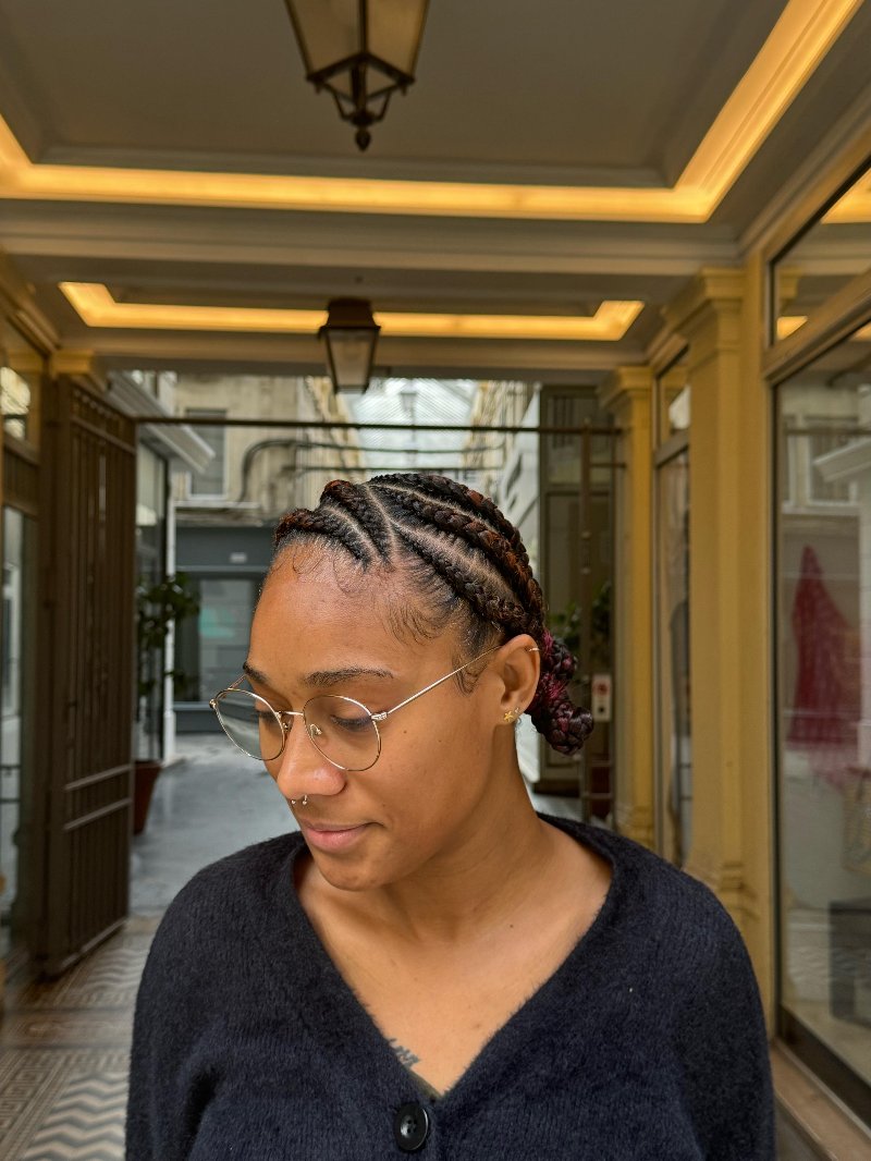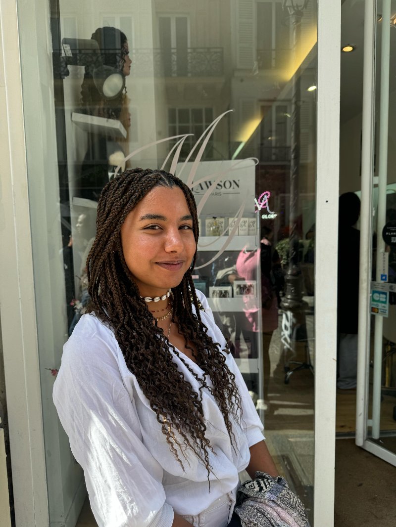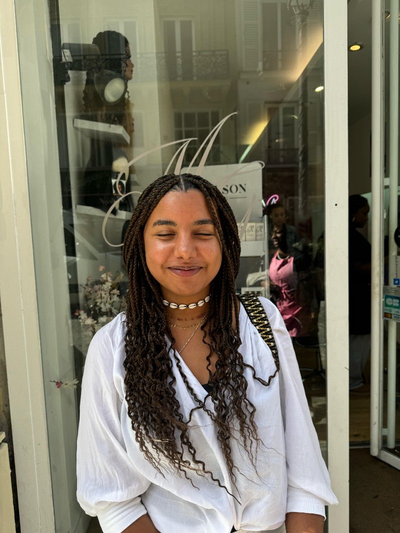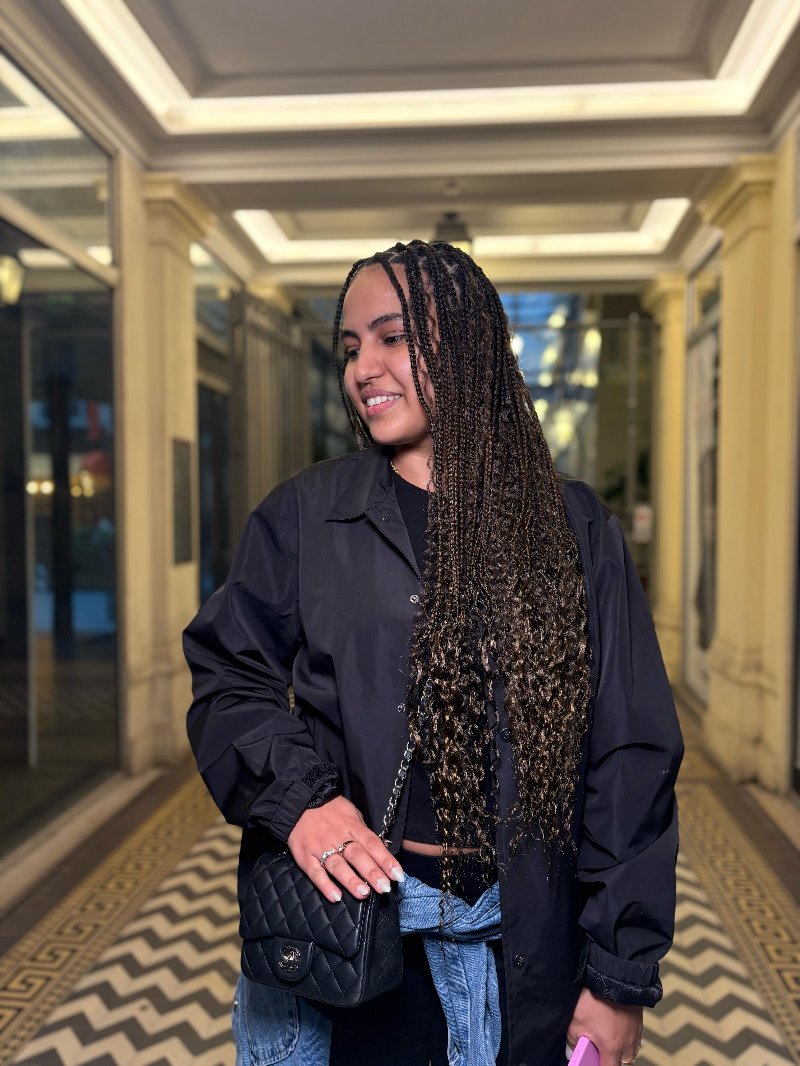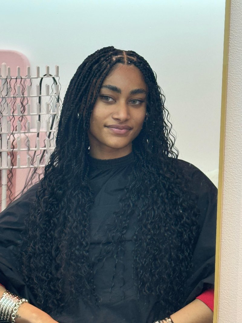 Aya est une experte reconnue dans l’art des tresses, avec une spécialisation dans les knotless braids, sa véritable signature. Elle se distingue par : • Rapidité : des prestations efficaces sans compromis sur la qualité. • Douceur : une technique respectueuse du cuir chevelu, garantissant confort et légèreté. • Communication : une écoute attentive et un échange fluide pour répondre parfaitement aux attentes de chaque cliente.