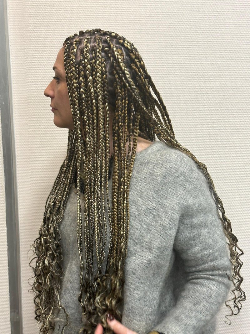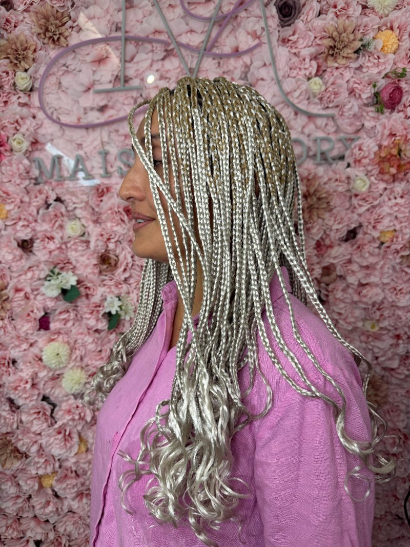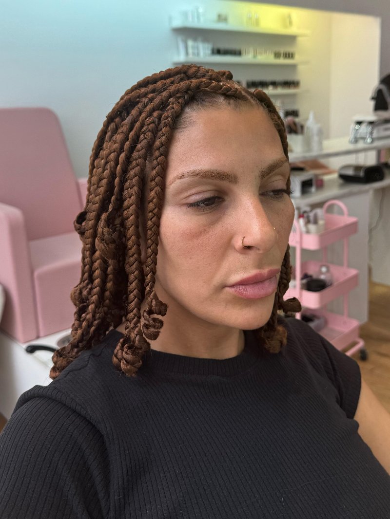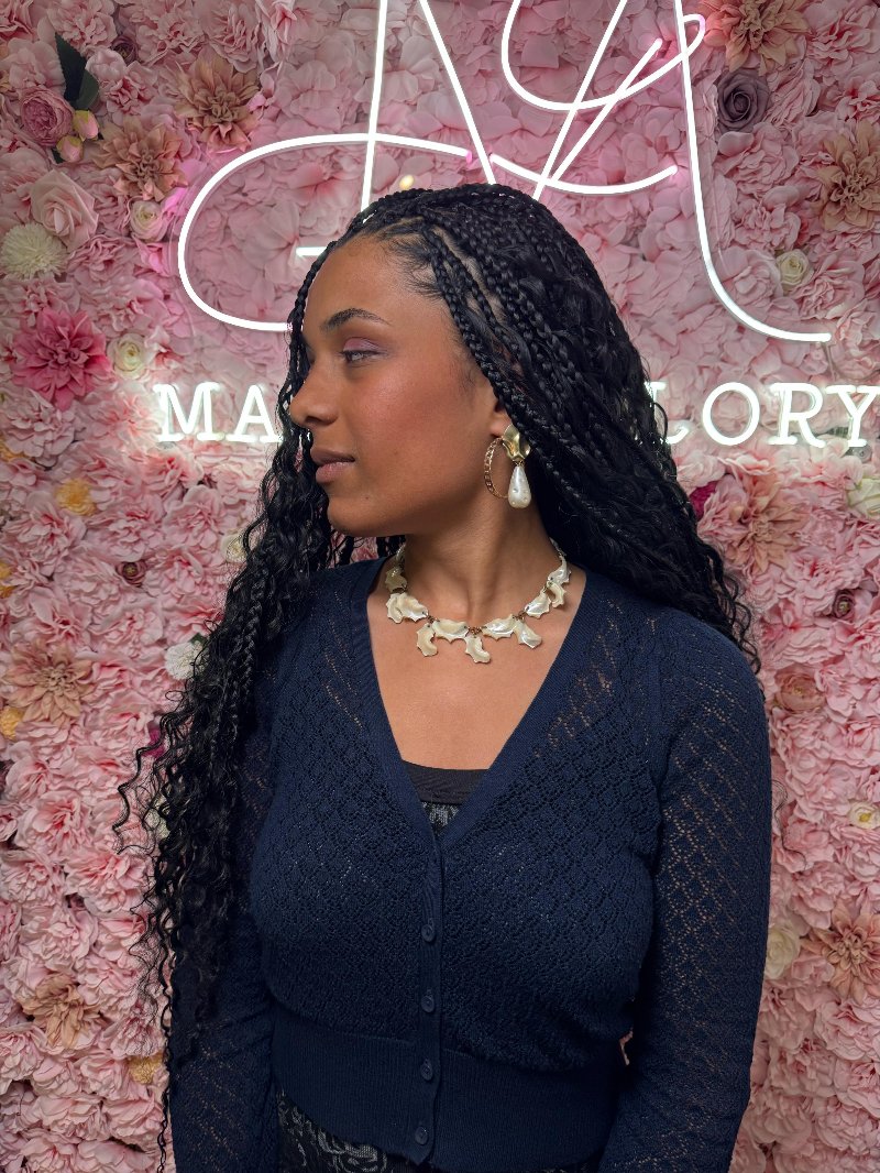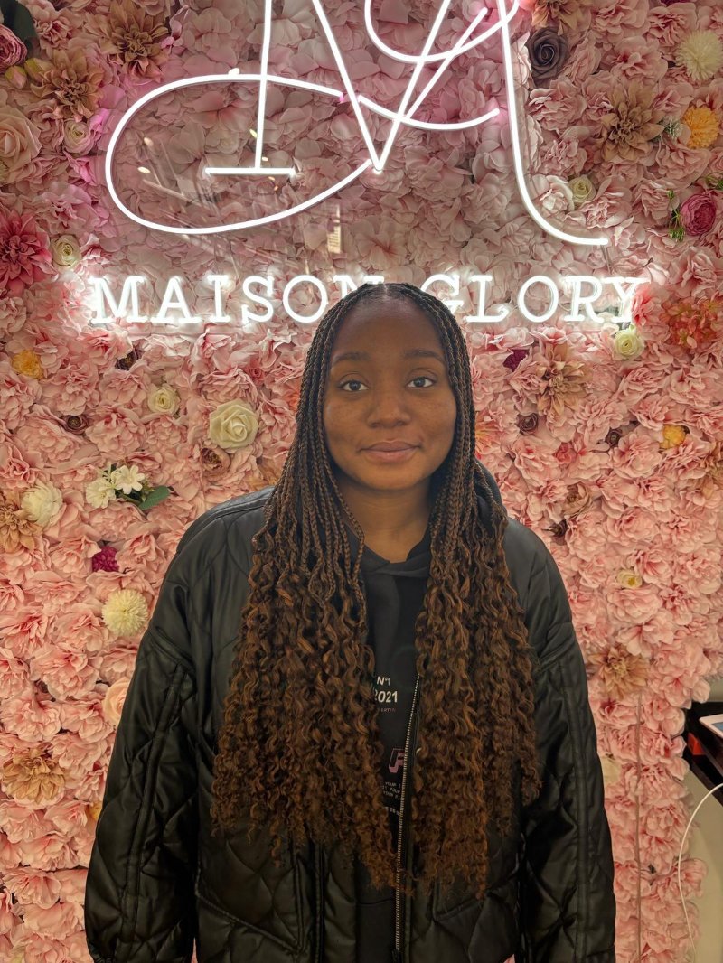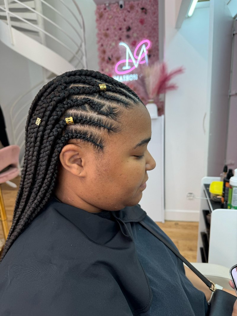 Aya est une experte reconnue dans l’art des tresses, avec une spécialisation dans les knotless braids, sa véritable signature. Elle se distingue par : • Rapidité : des prestations efficaces sans compromis sur la qualité. • Douceur : une technique respectueuse du cuir chevelu, garantissant confort et légèreté. • Communication : une écoute attentive et un échange fluide pour répondre parfaitement aux attentes de chaque cliente.