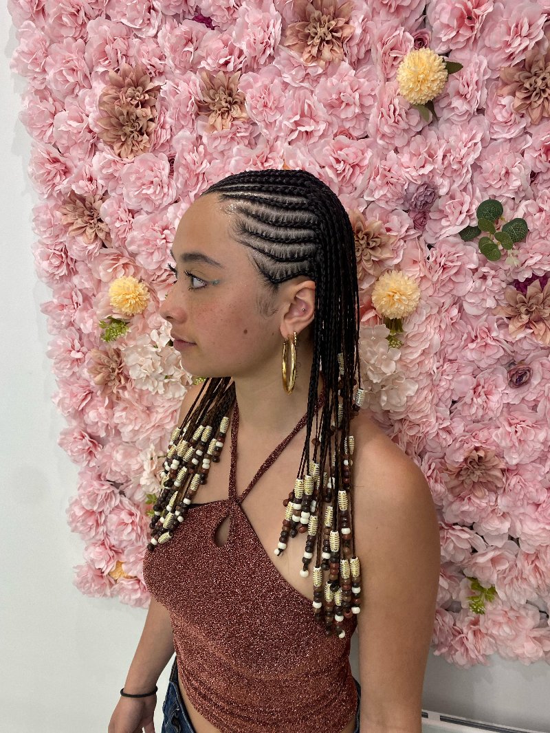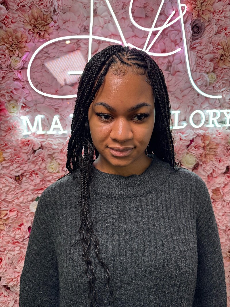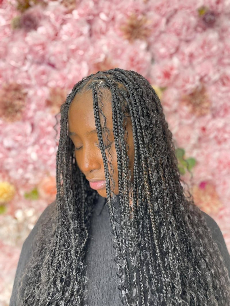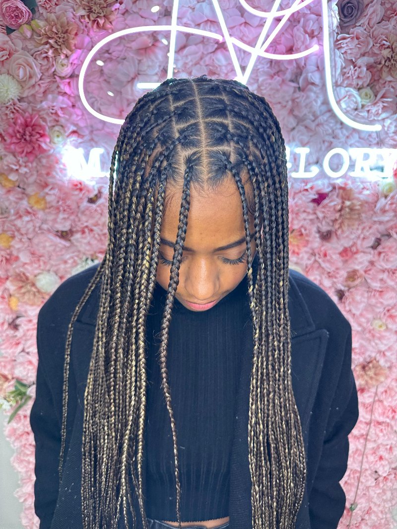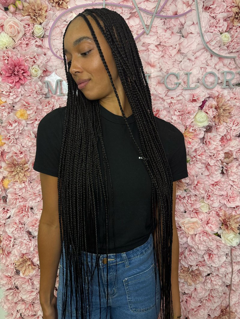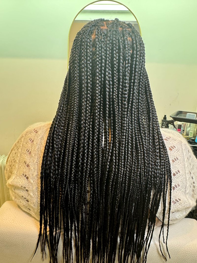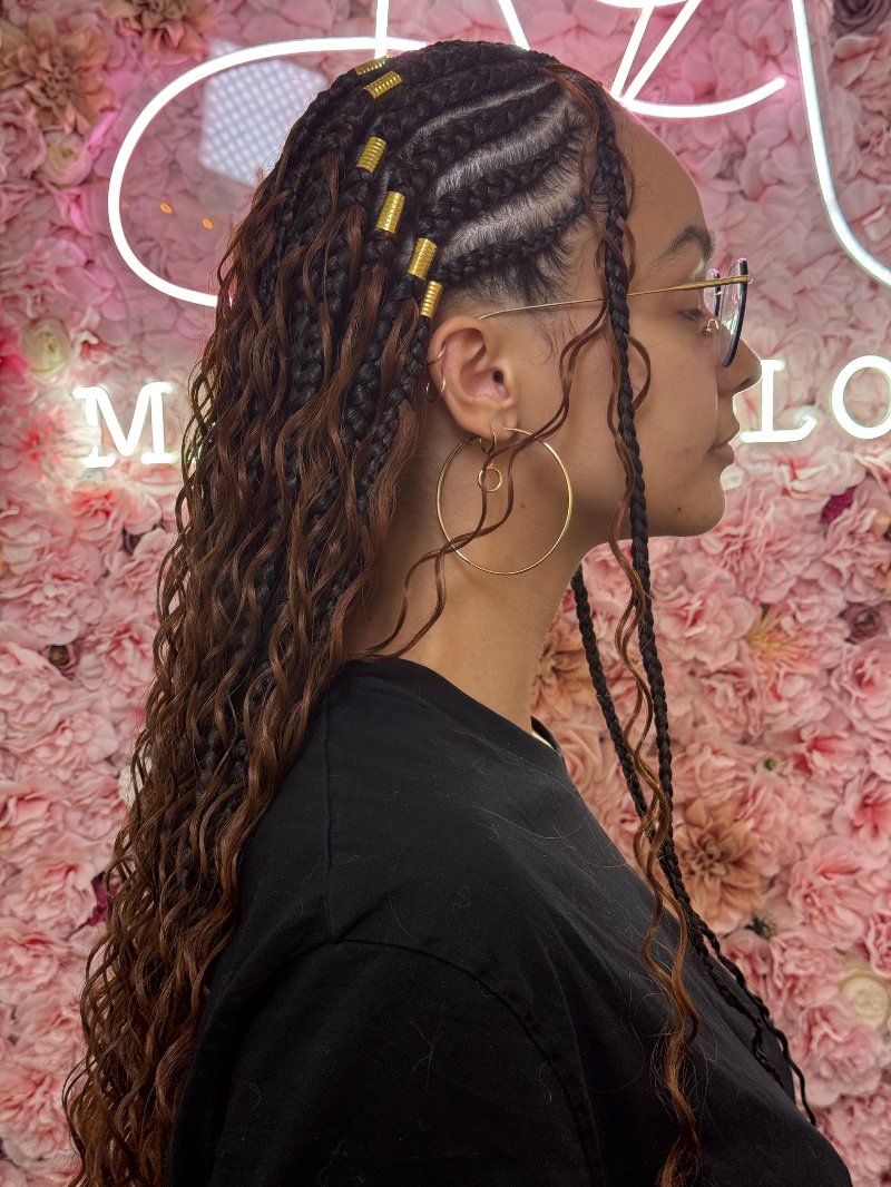 Aya est une experte reconnue dans l’art des tresses, avec une spécialisation dans les knotless braids, sa véritable signature. Elle se distingue par : • Rapidité : des prestations efficaces sans compromis sur la qualité. • Douceur : une technique respectueuse du cuir chevelu, garantissant confort et légèreté. • Communication : une écoute attentive et un échange fluide pour répondre parfaitement aux attentes de chaque cliente.