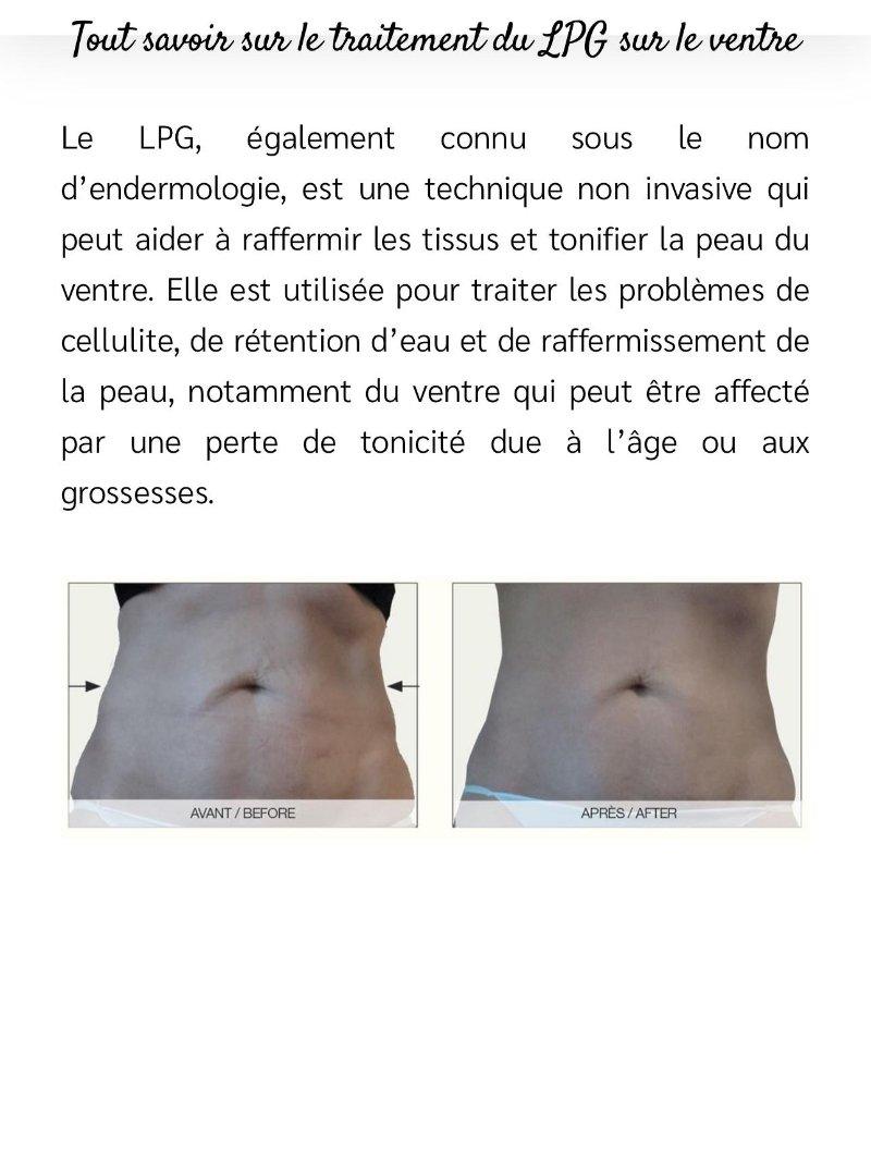 Services proposés : • Soins minceur (drainage lymphatique, pressothérapie, etc.) • Massages relaxants et tonifiants • Programmes personnalisés bien-être et silhouette